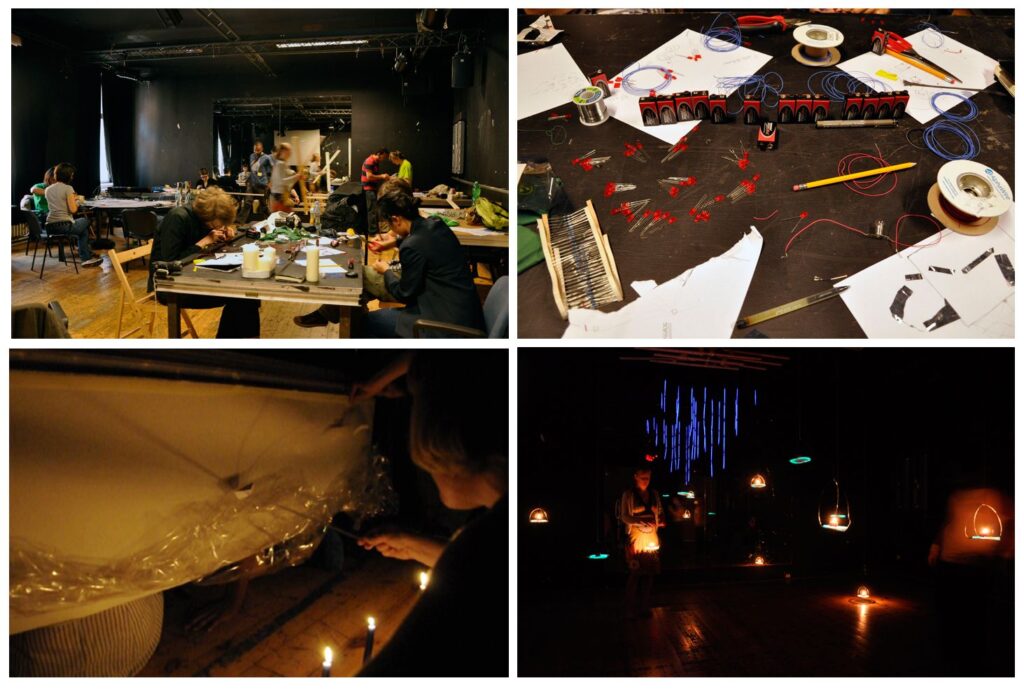 As important is for young artists to come in contact with advanced technologies, equally important is the ability to improvise with simple means. In the “Unplugged Light” workshop, participants had to imagine the function of a theater in the case of a general electricity blackout and consecutively, to study and produce a light object that can function independently. Unexpected effects can be achieved with inexpensive but smartly assembled materials.